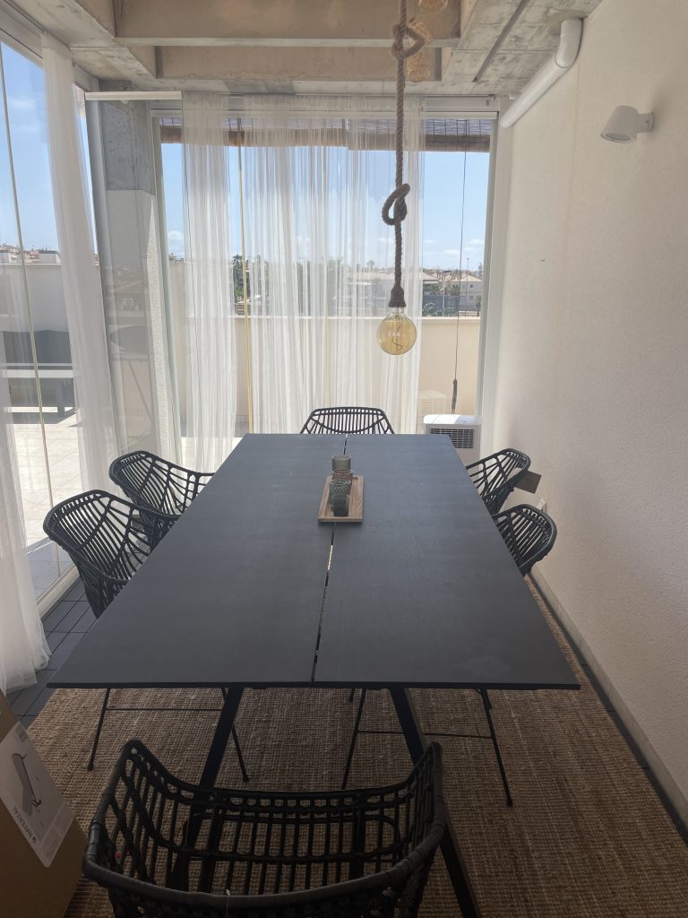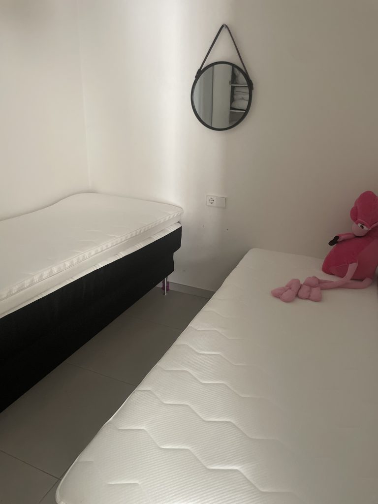 A new built penthouse with a beautiful view over the pool and the area. 2-3 bedrooms, 1 master bedroom with a comfortable 160×200 Swedish Hilding Anders bed, 1 bedroom with 2 single 80×200 Swedish Hilding Anders beds, 1 140×200 Italian comfortable bedsofa with 16cm madress. Modern and spacious feel to the rooms, making this an ideal choice for you who travel 4-6 people.